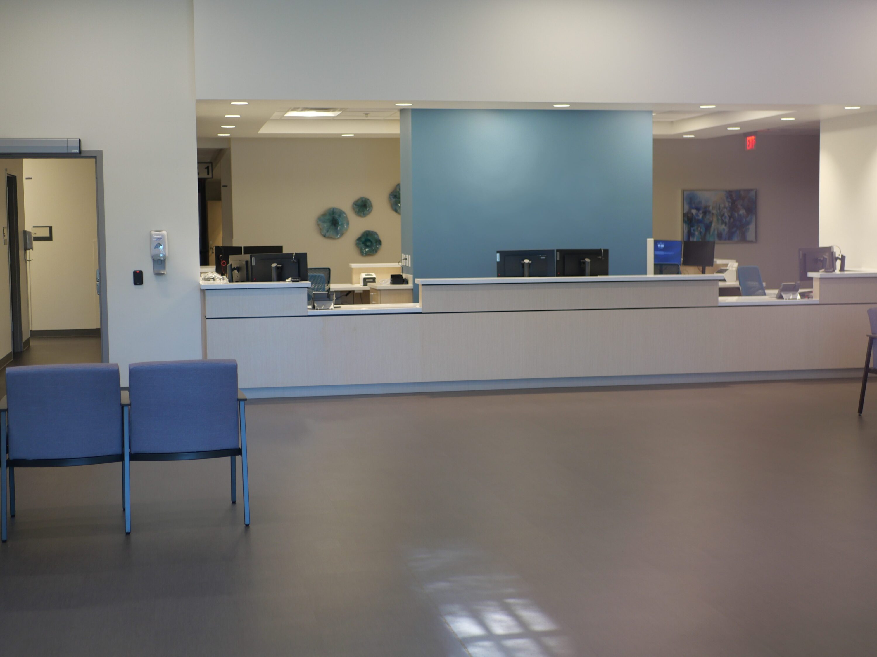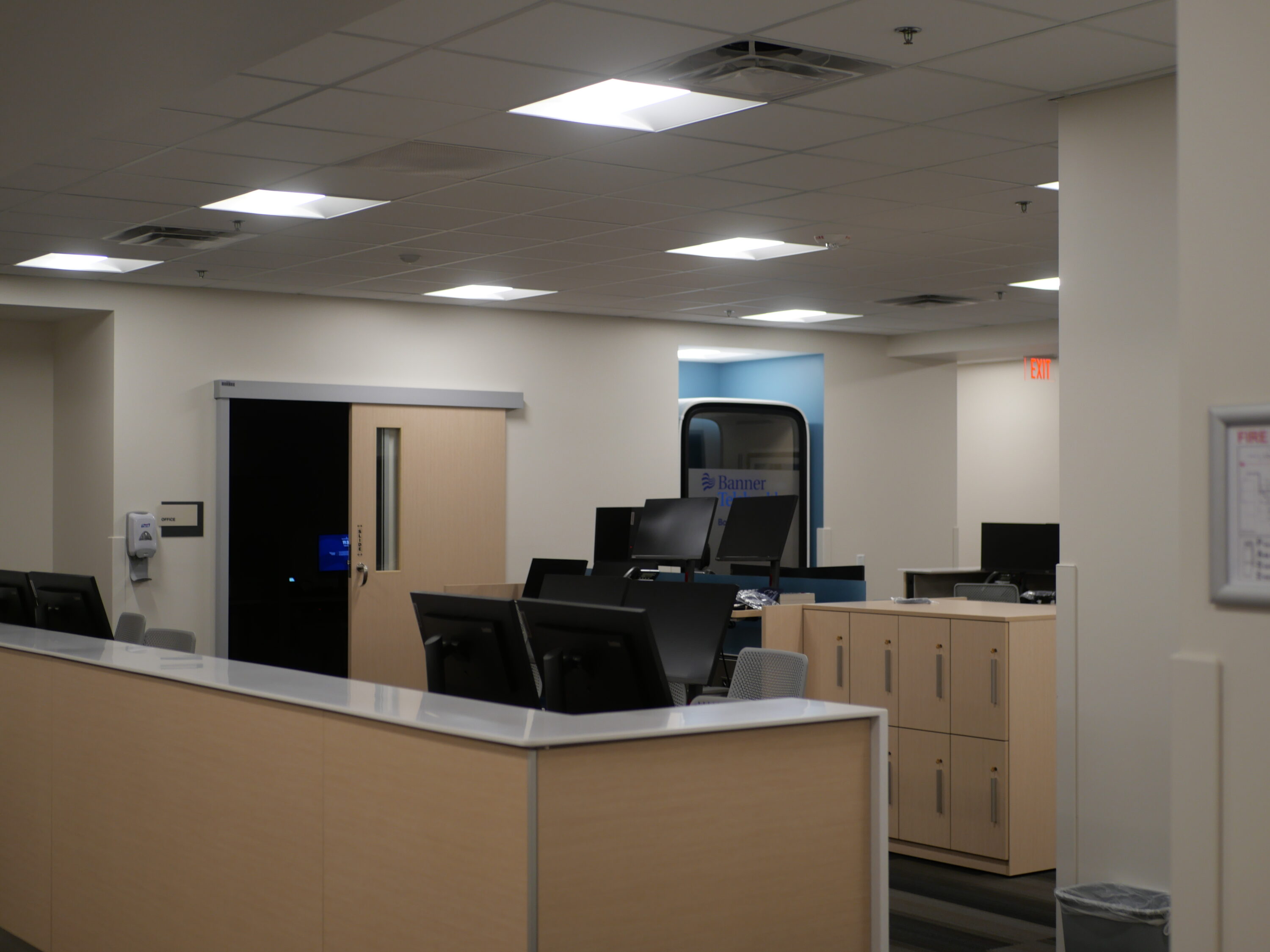 Tenant improvement project to renovate approximate 12,500 sqft office building for Primary Care facility use. Including the waiting area and check-in counter, sixteen exam rooms, x-ray imaging suite, training and conference rooms, and supporting equipment supply and office and provider spaces.