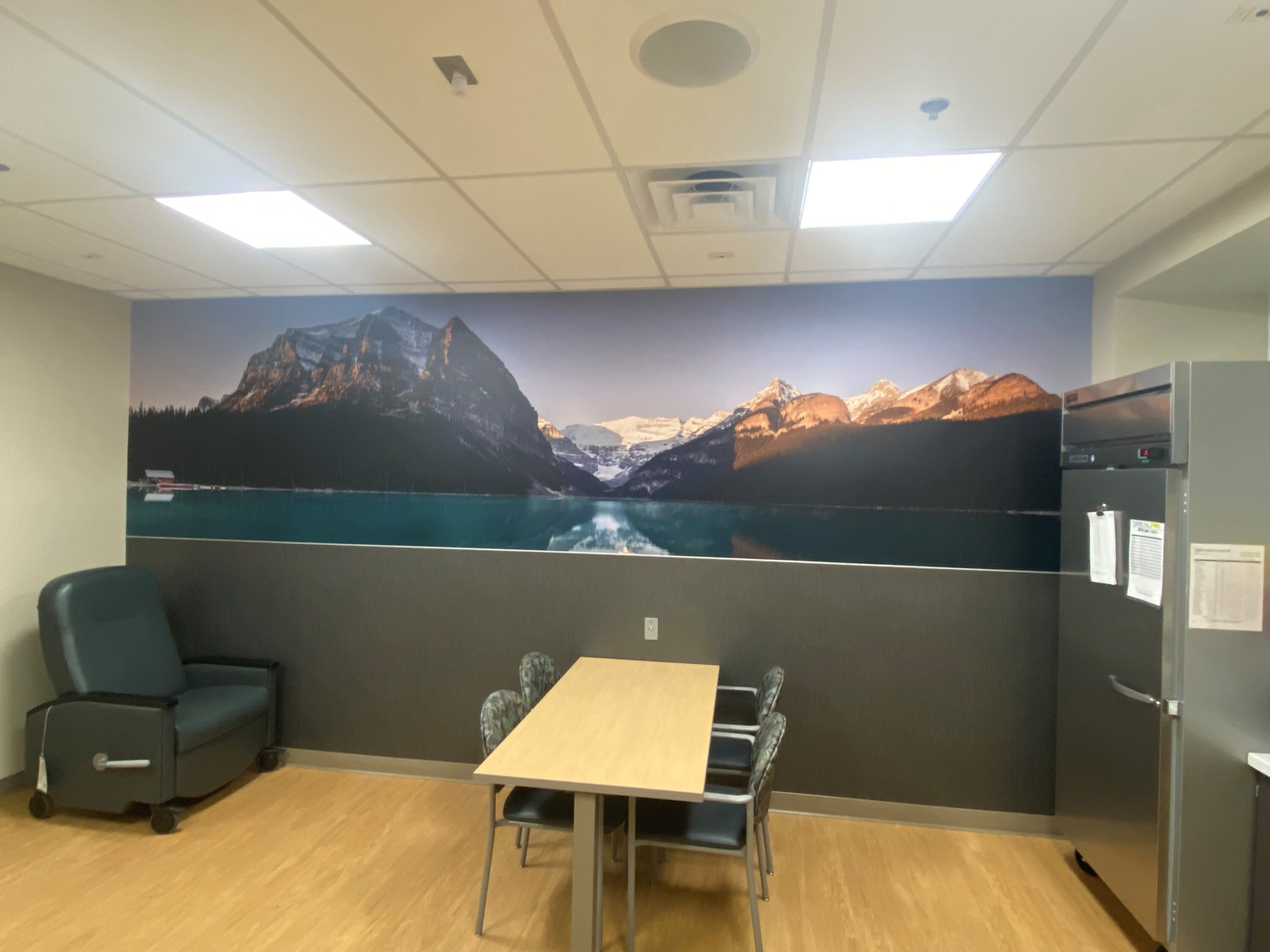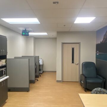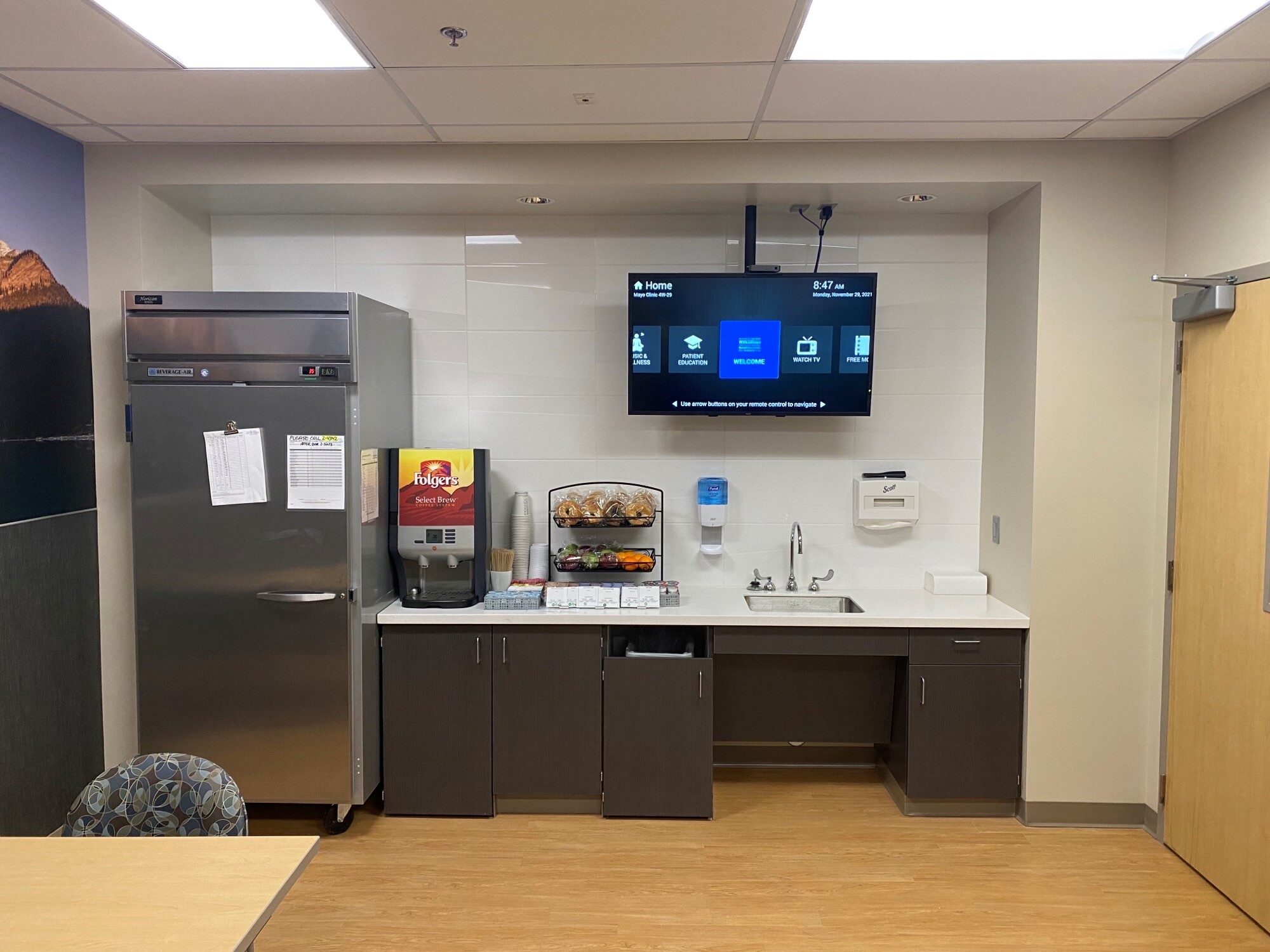 Finishes and millwork remodel of an existing 400 SF lounge space within hospital.